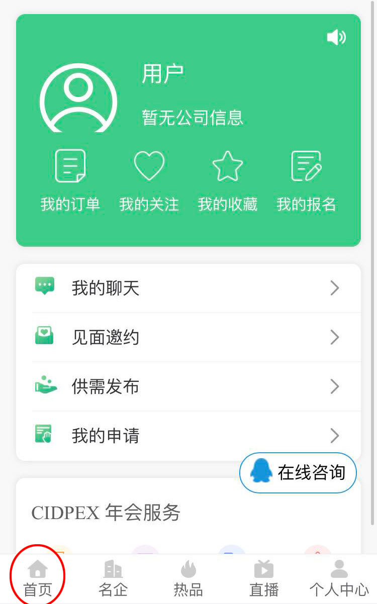 二、登錄進(jìn)入個(gè)人中心后點(diǎn)擊左下角“首頁”返回“首頁”