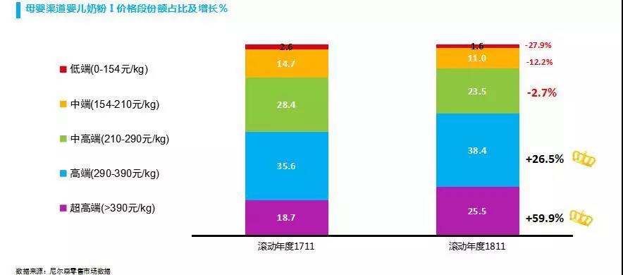 過去的一年,我們可以看到母嬰品類高端化市場集中爆發(fā),以下我們從奶粉、紙尿褲等細(xì)分領(lǐng)域的市場變化和品牌表現(xiàn)來證實這一點。