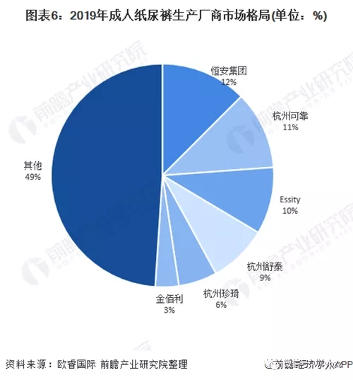 在成人紙尿褲生產(chǎn)廠商中,恒安集團(tuán)、杭州可靠、Essity市場份額超過10%。排名前六的成人紙尿褲生產(chǎn)廠商市場份額為51.04%,市場集中度相對較高,生產(chǎn)廠商之間市場份額沒有拉開明顯的差距,市場競爭相對激烈。.jpg)
