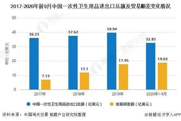我國一次性衛(wèi)生用品進(jìn)出口市場規(guī)模龐大且不斷增長,2020年前三季度貿(mào)易順差超過2019年全年,其中出口額加速增長,進(jìn)口額不斷縮減。但同時也面臨著不少挑戰(zhàn):原材料料價(jià)格上漲、成本壓力加大、國際貿(mào)易保護(hù)主義抬頭、關(guān)稅壁壘等。